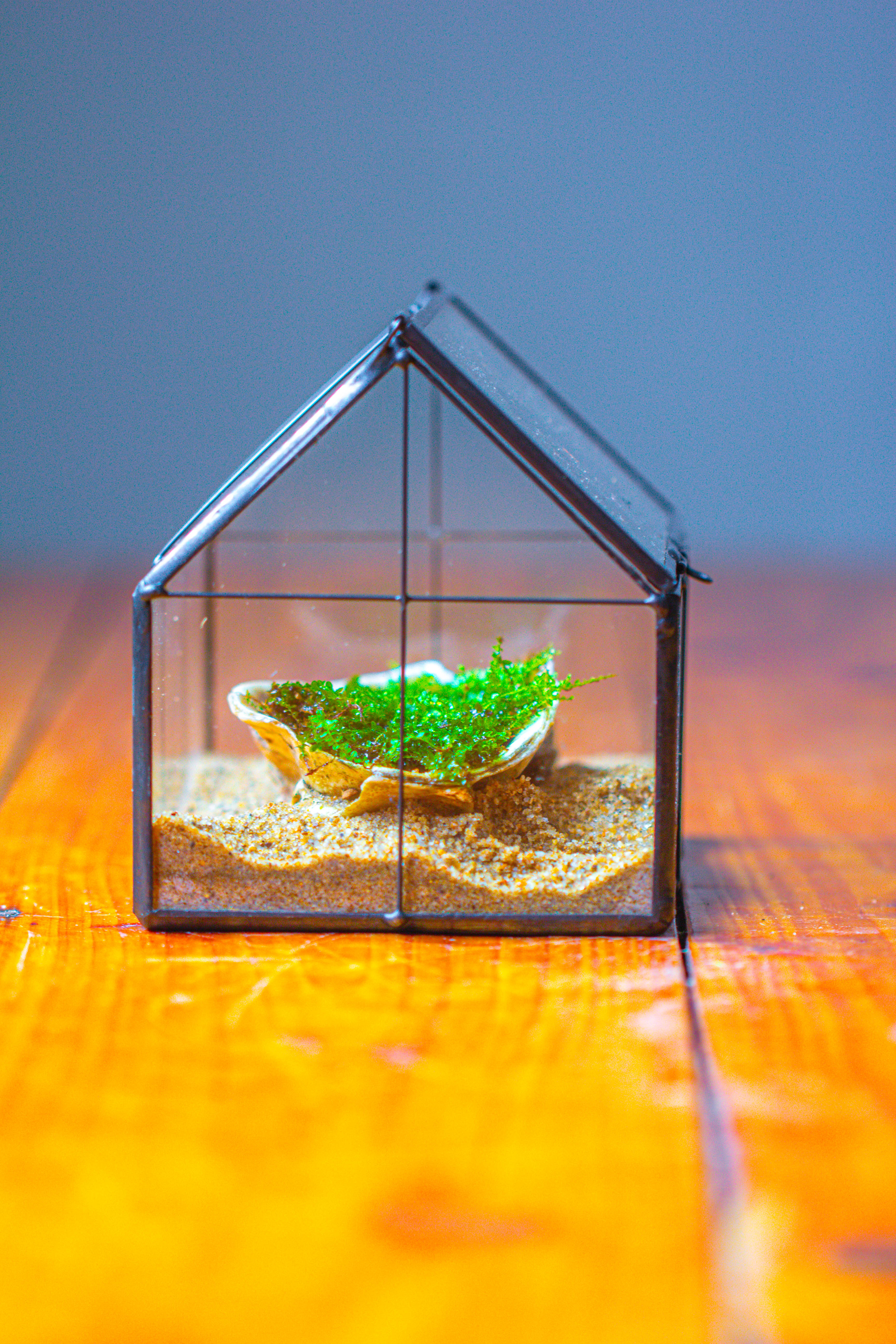 NCYP Mini Glass Terrarium with Lid House Shape Closed Planter Pot for Small Cactus, Succulents Plant