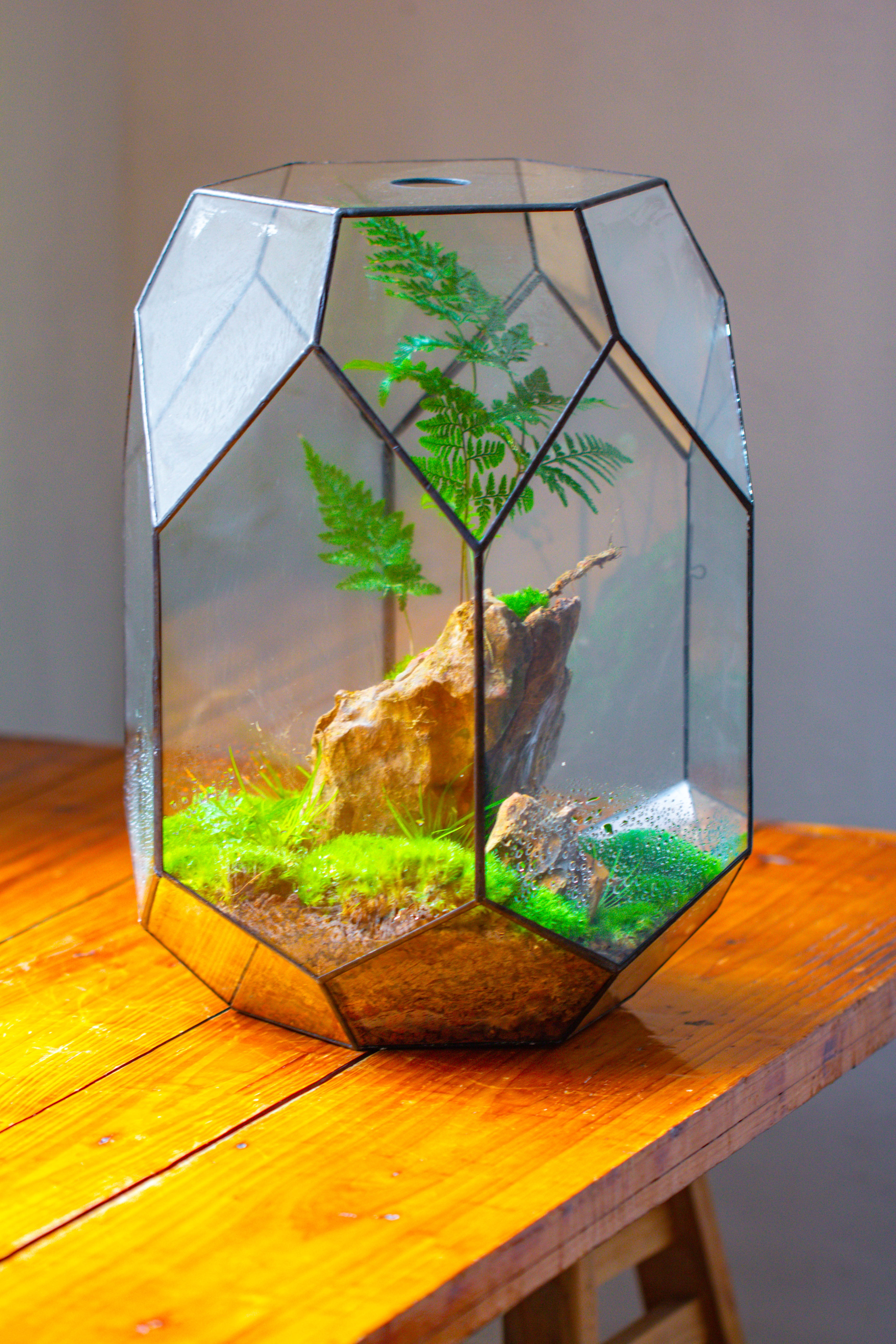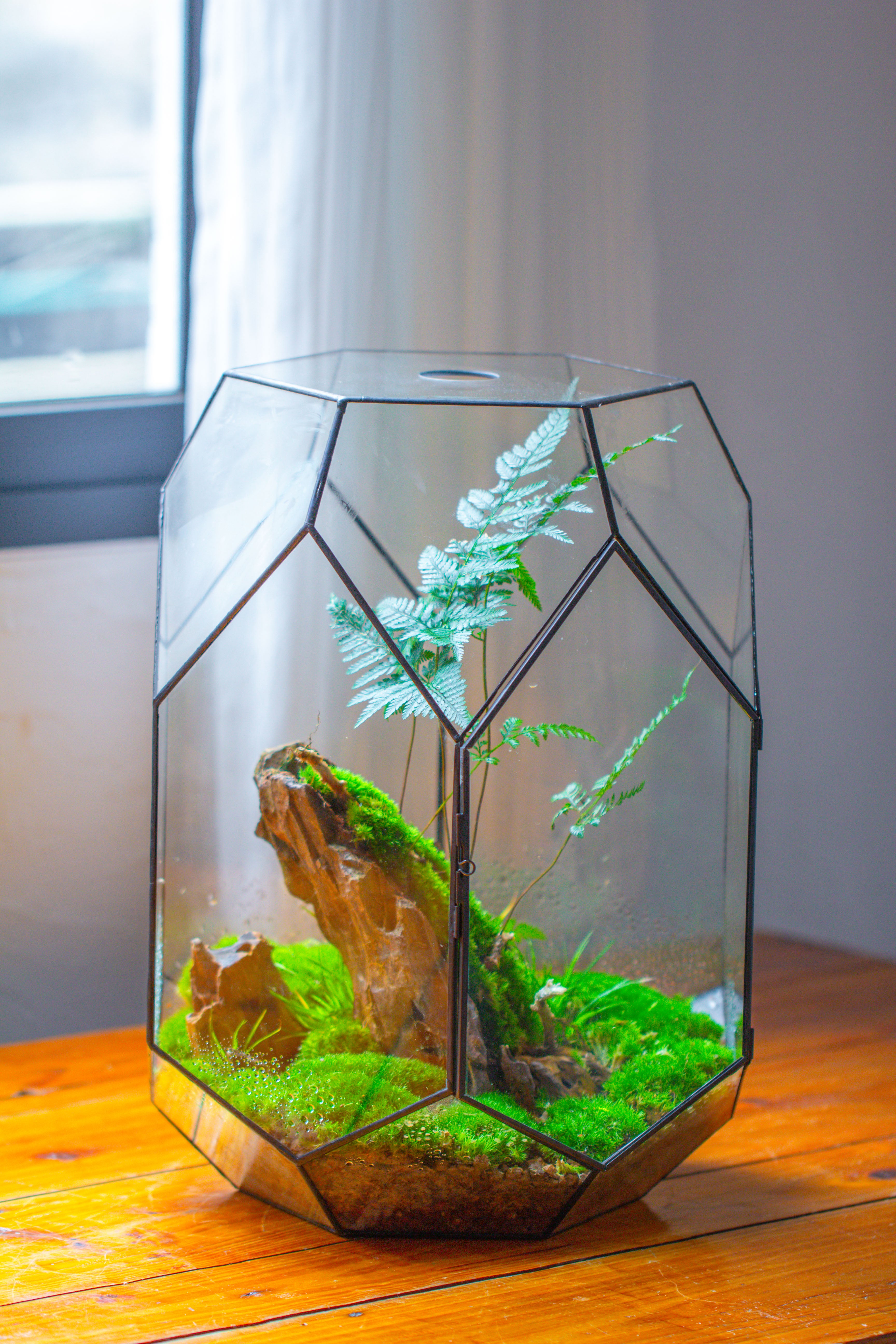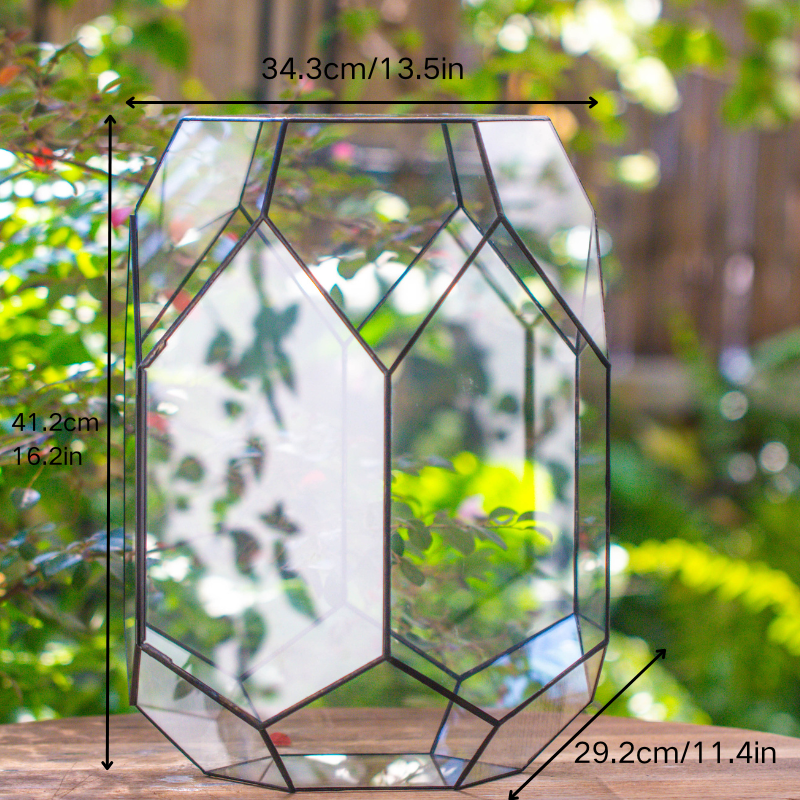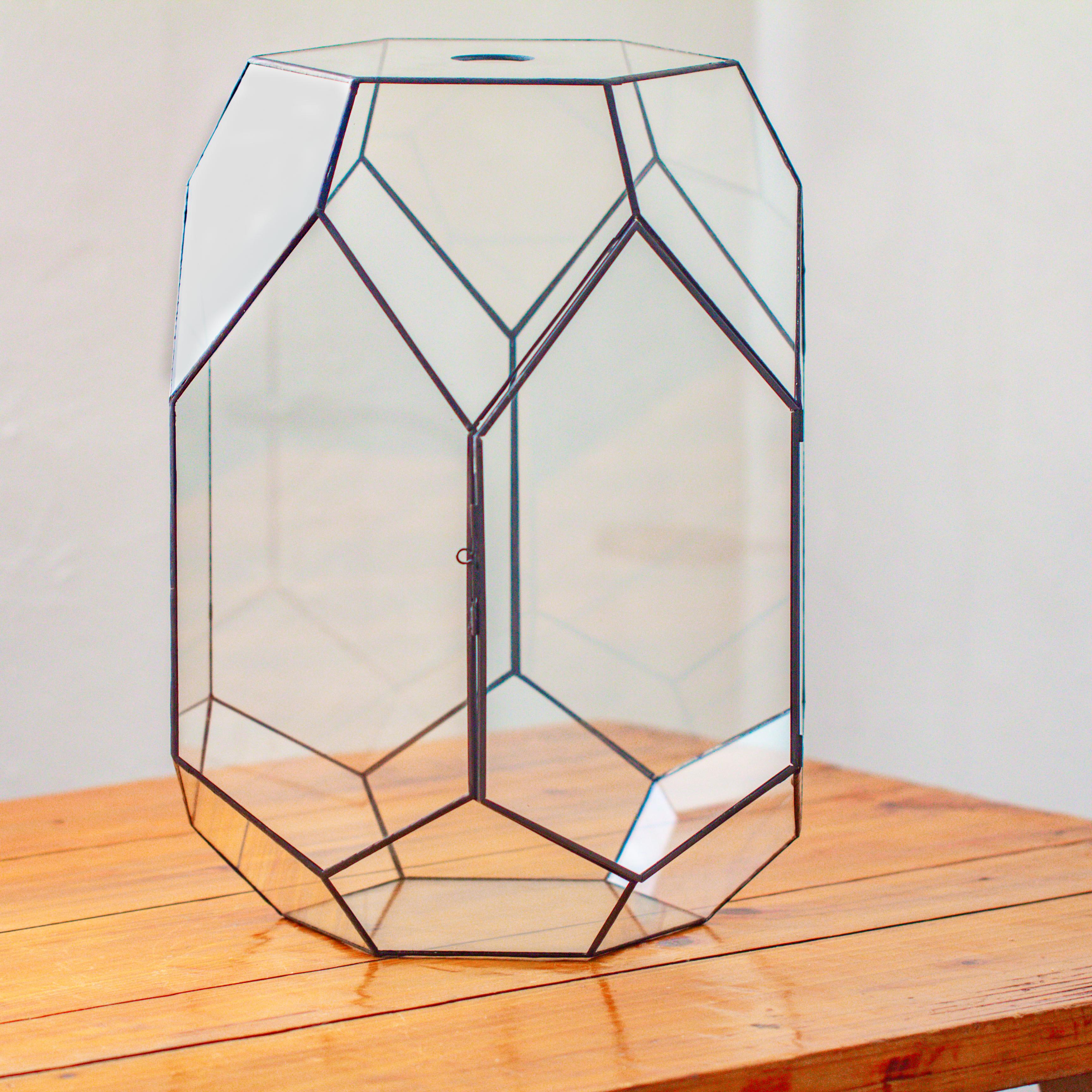 16.2" tall, 13" wide Super Large Flat Top with Vent Hole Close Geometric Glass Terrarium