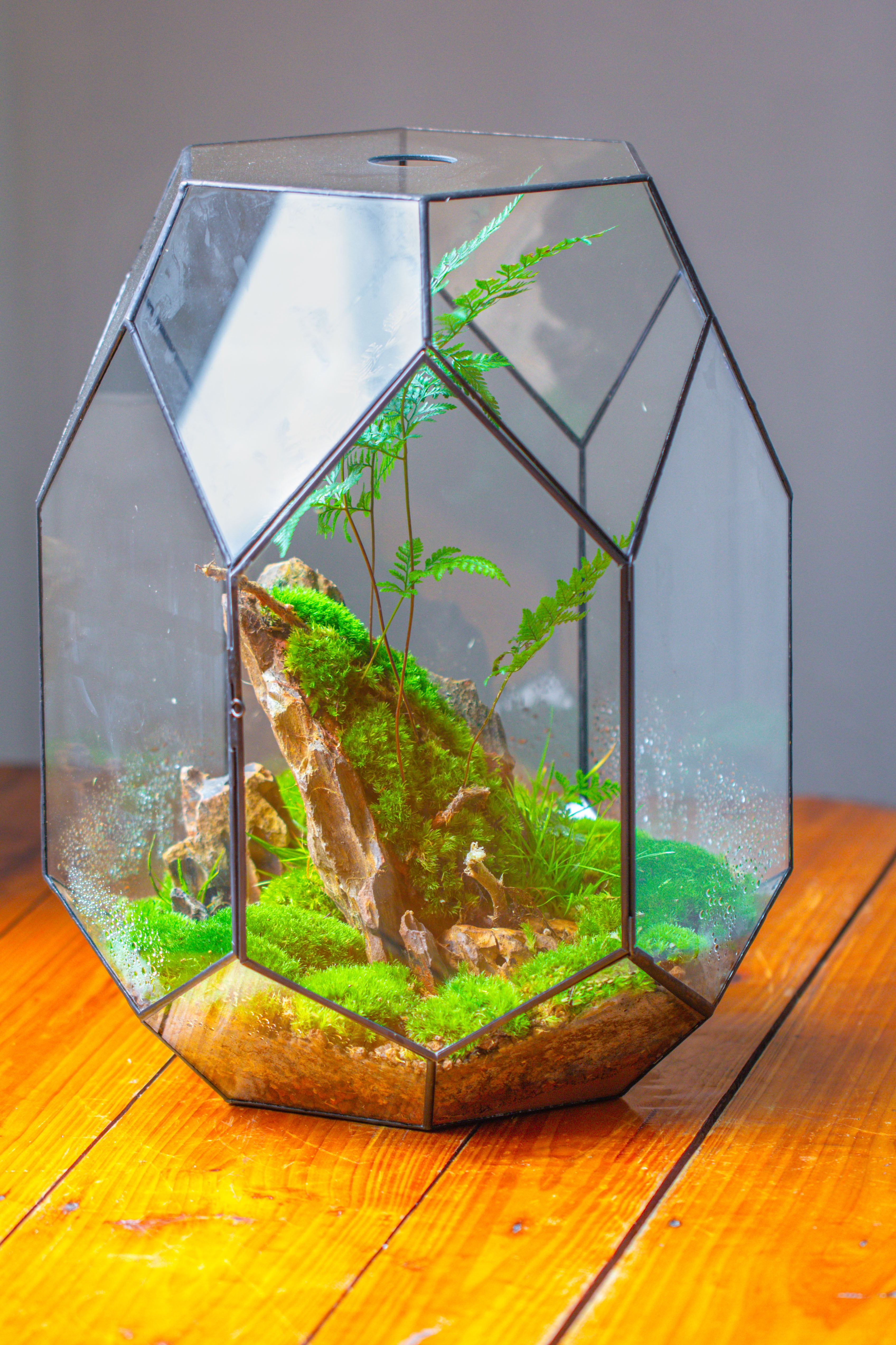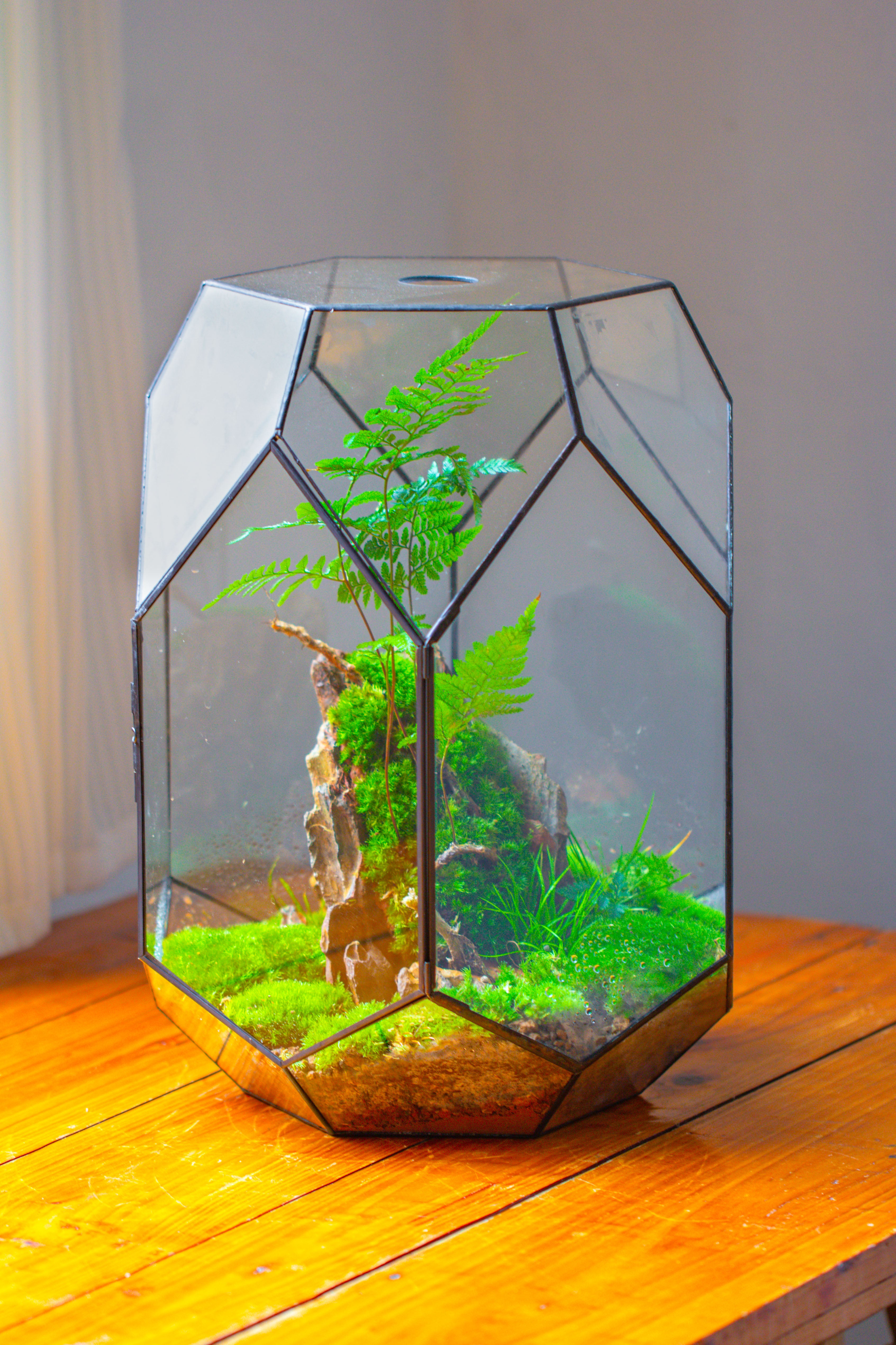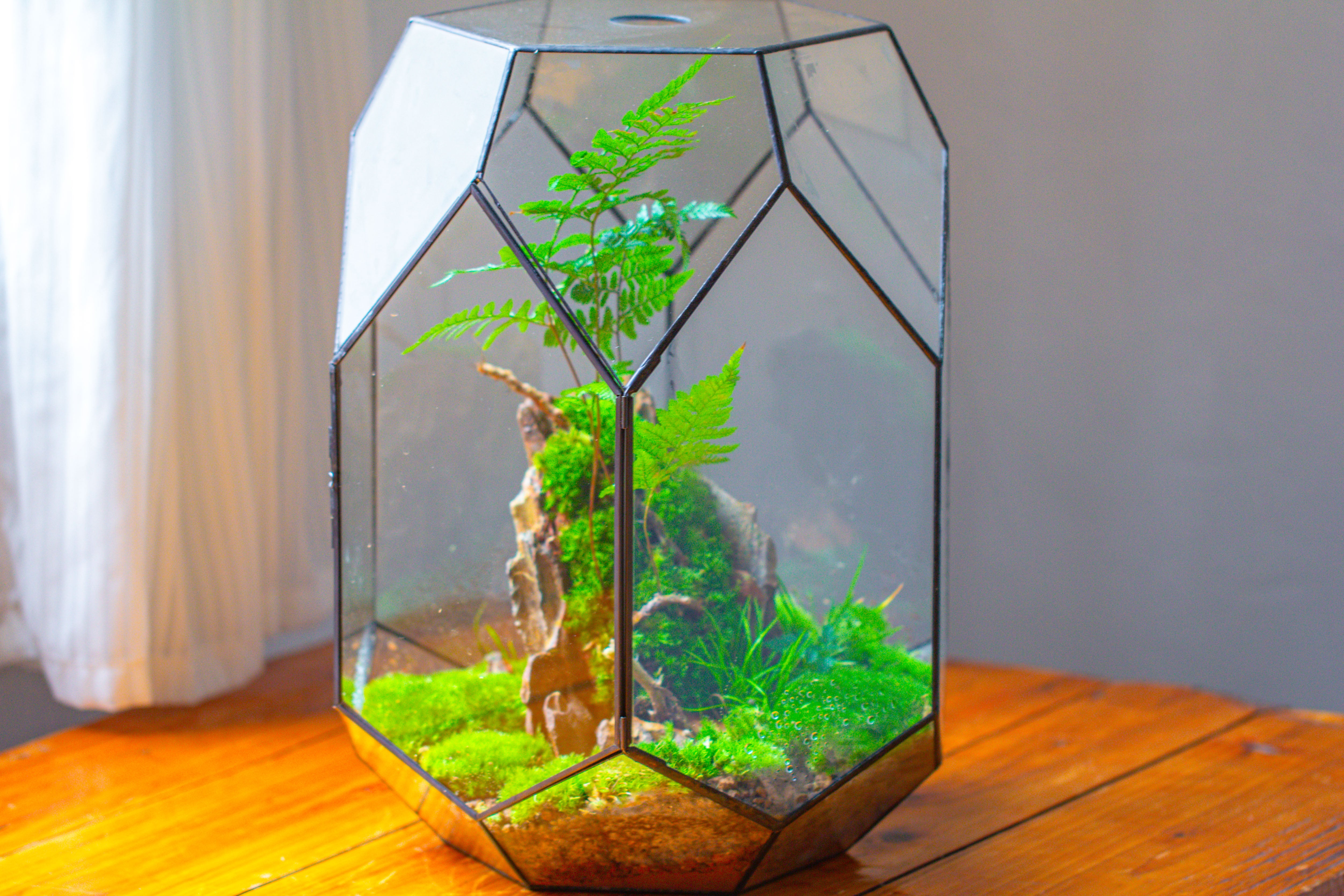 16.2" tall, 13" wide Super Large Flat Top with Vent Hole Close Geometric Glass Terrarium