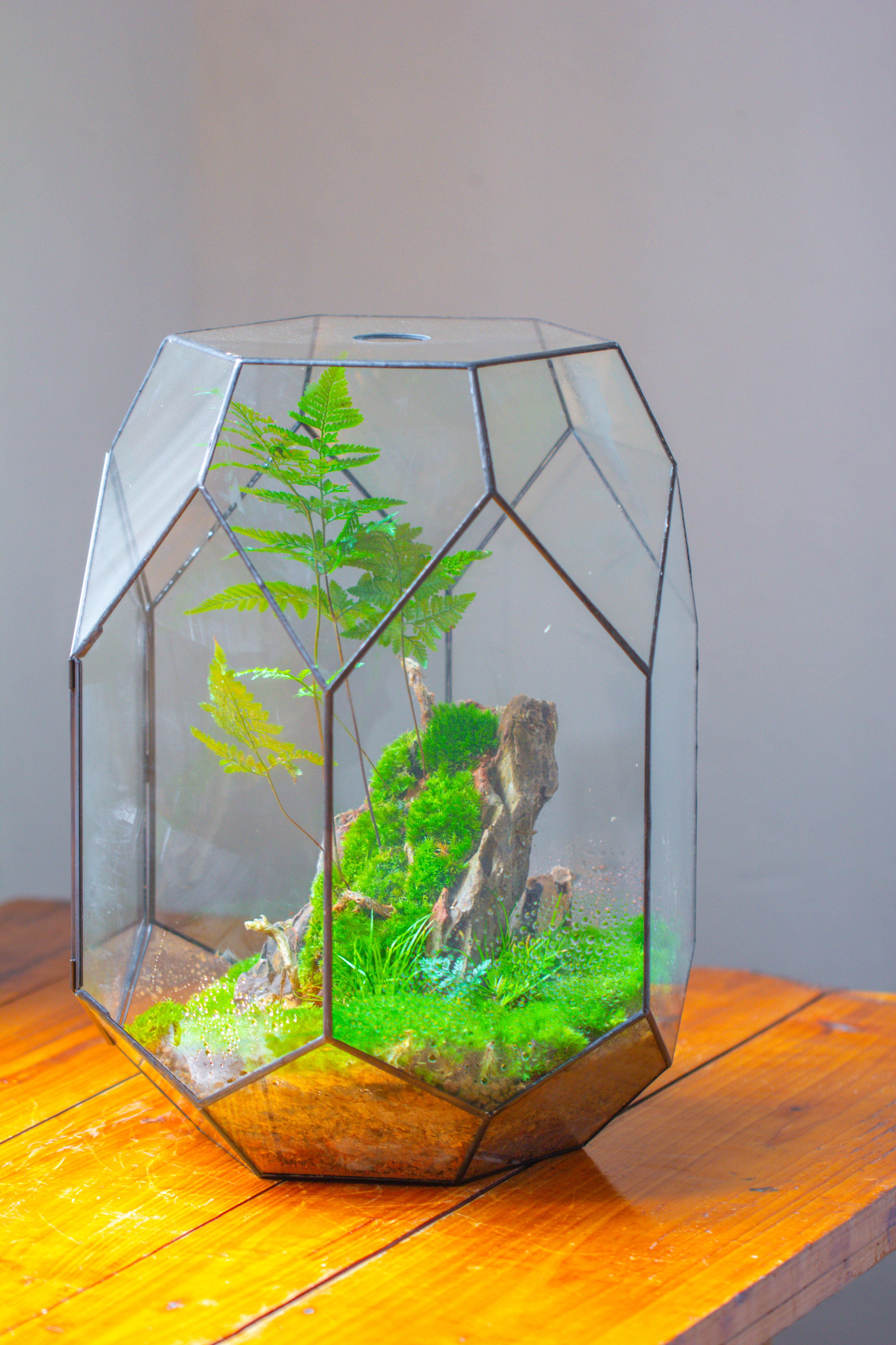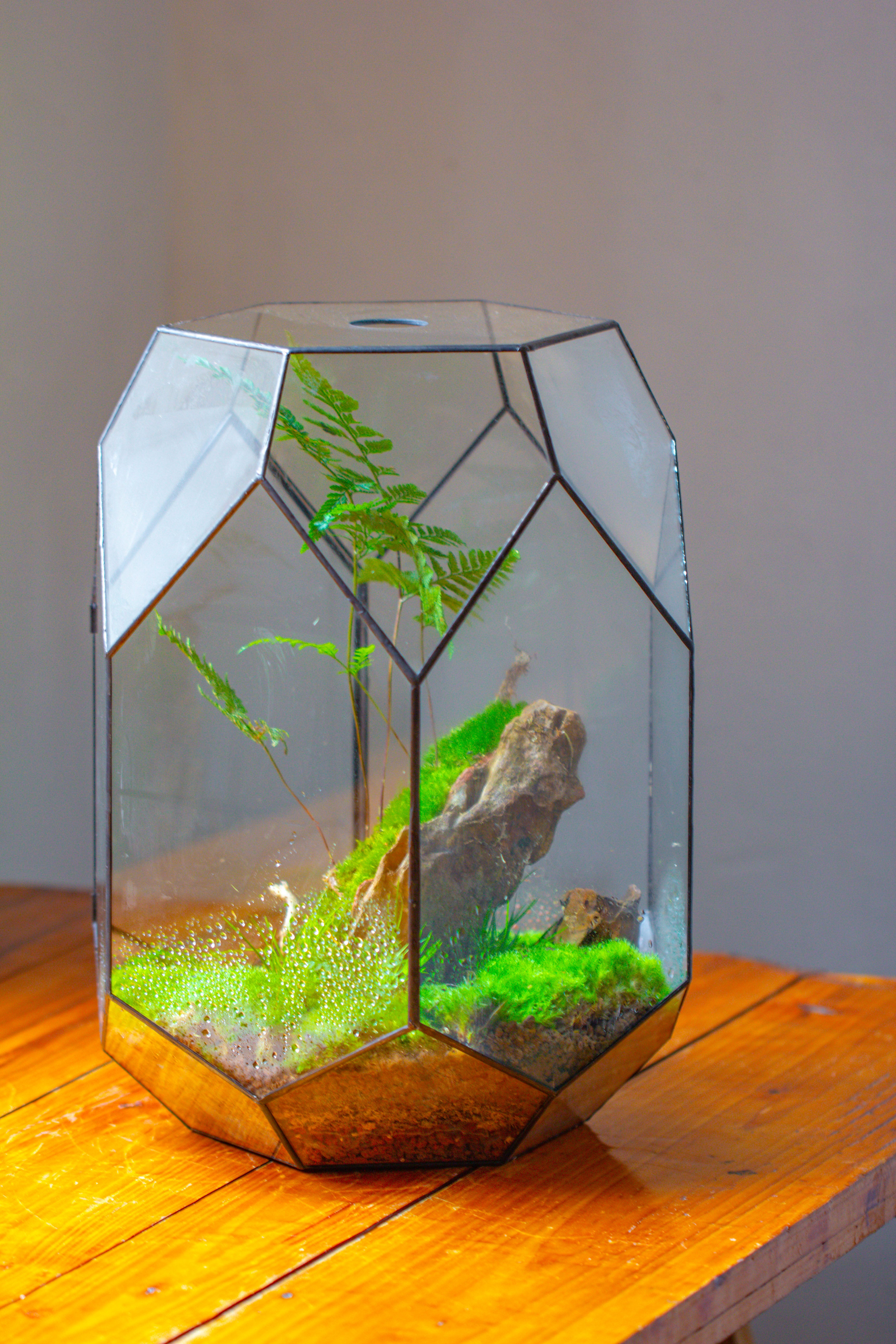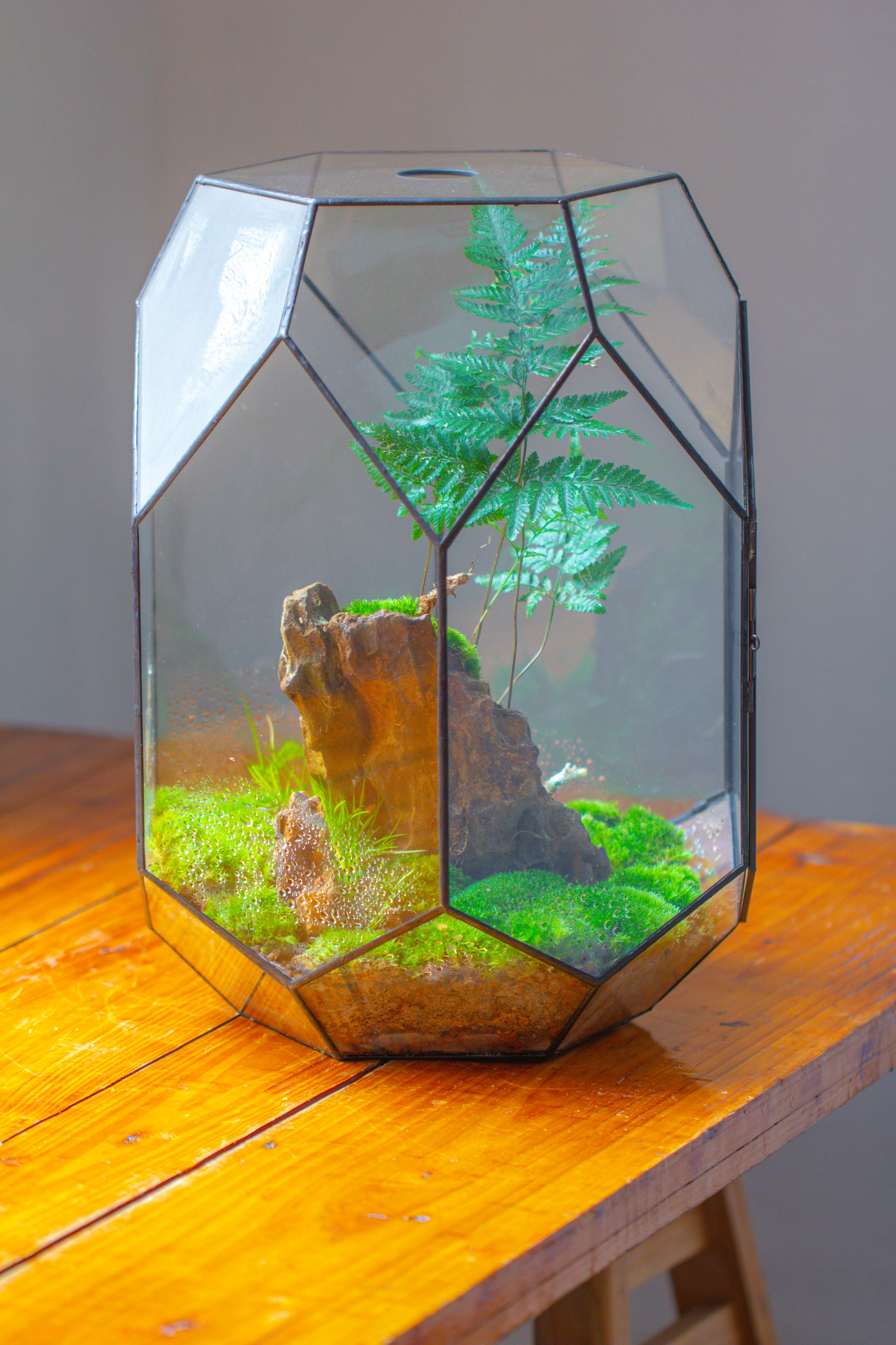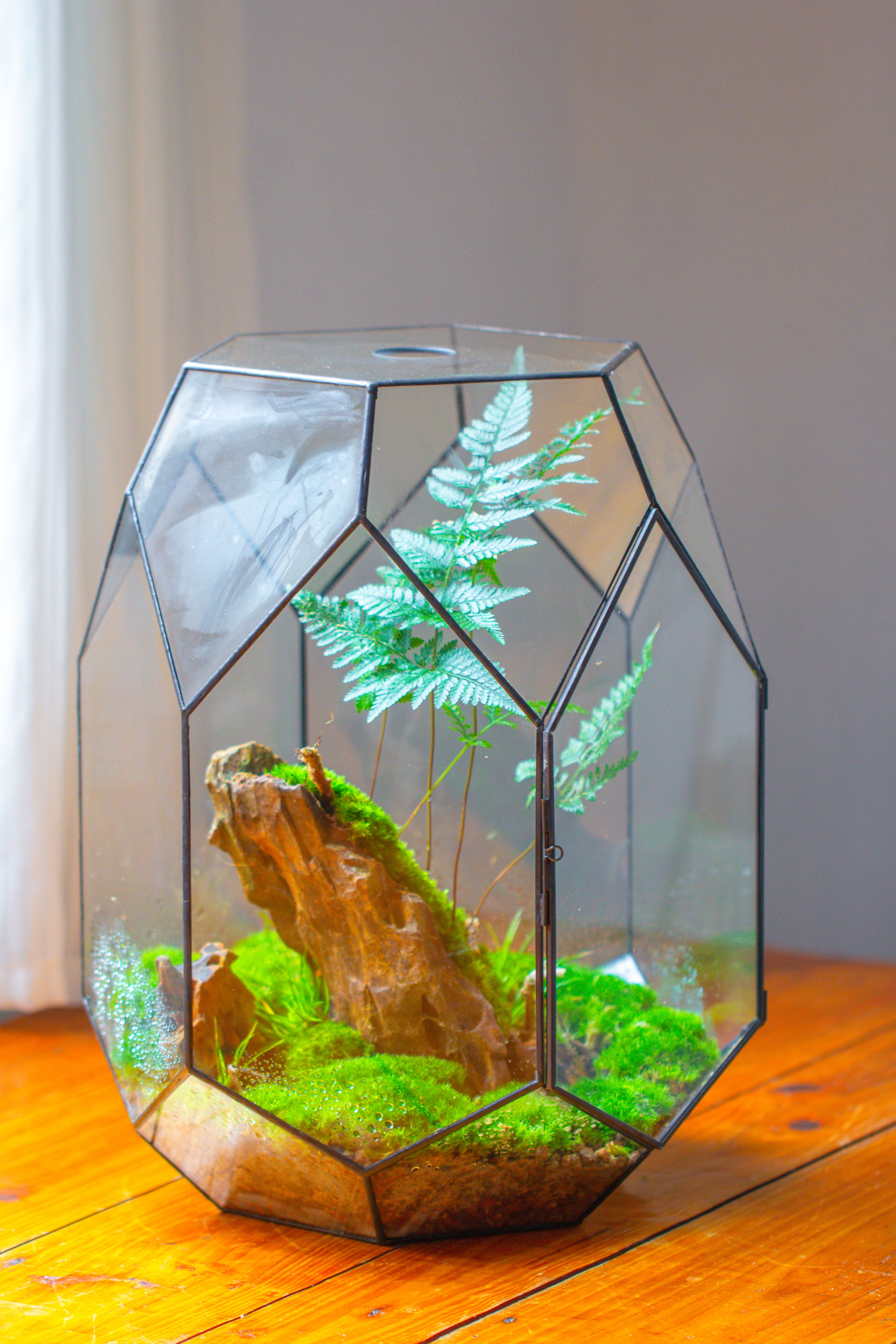 16.2" tall, 13" wide Super Large Flat Top with Vent Hole Close Geometric Glass Terrarium