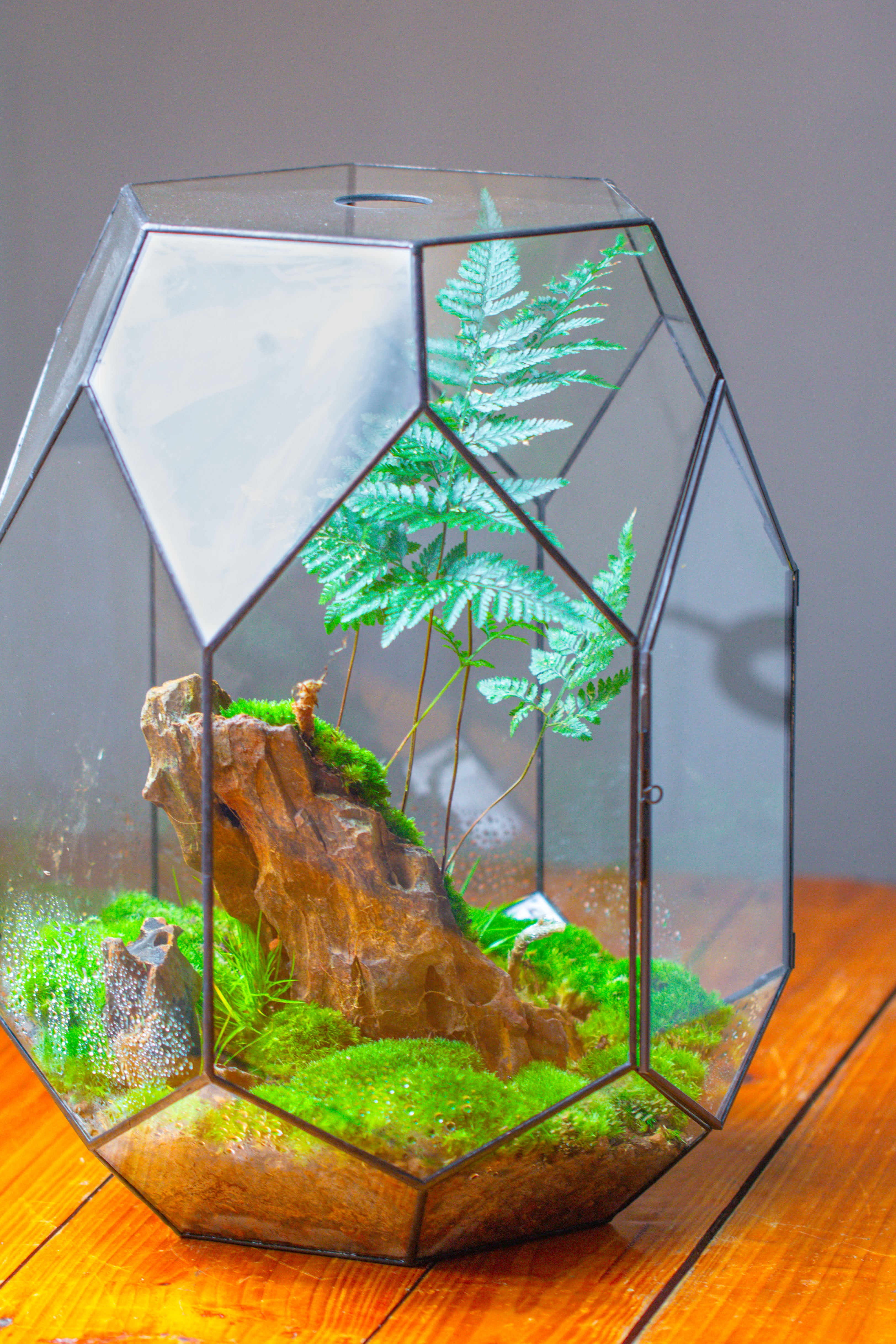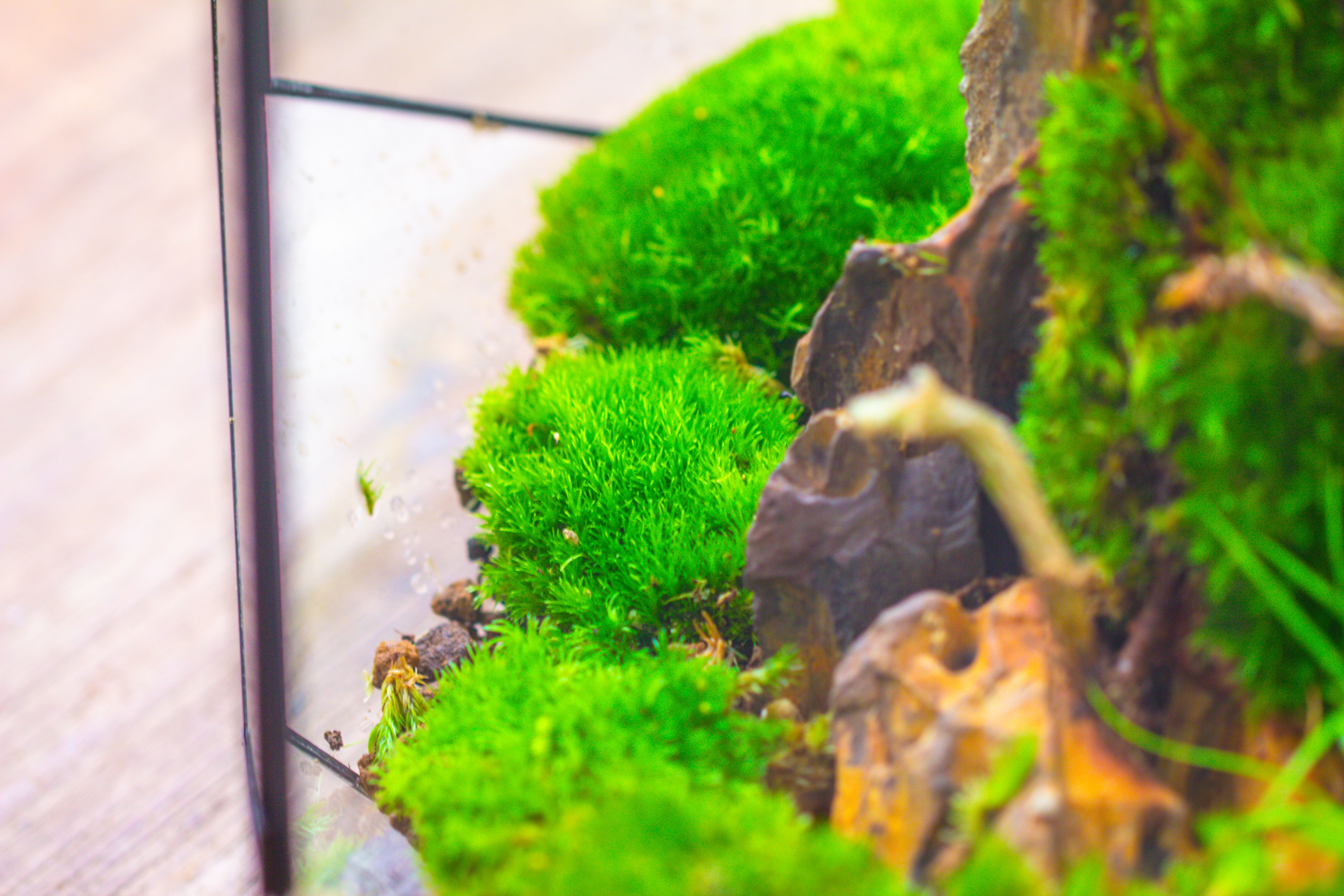 5. The main plant in this terrarium: cushion moss and black rabbit feet fern.