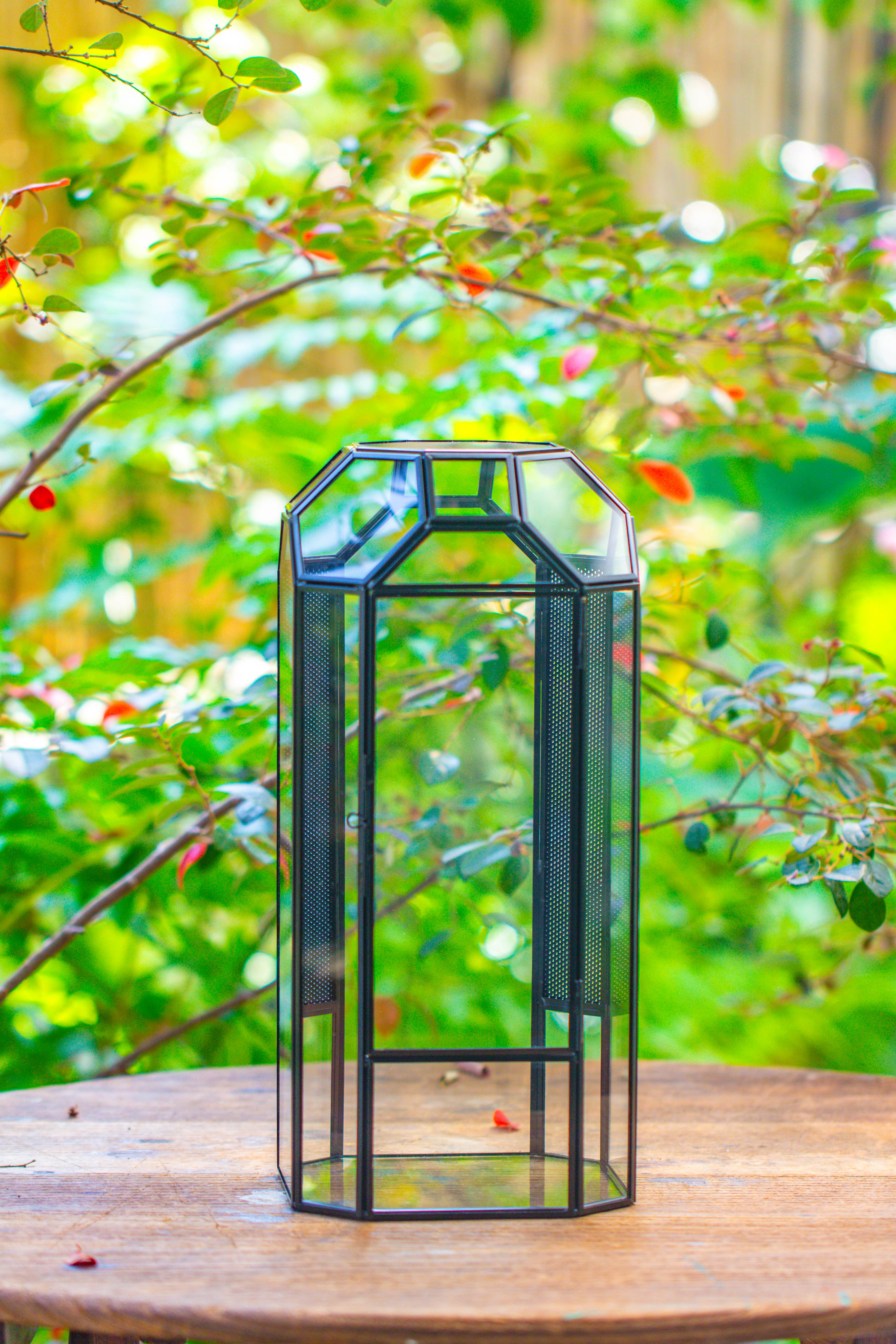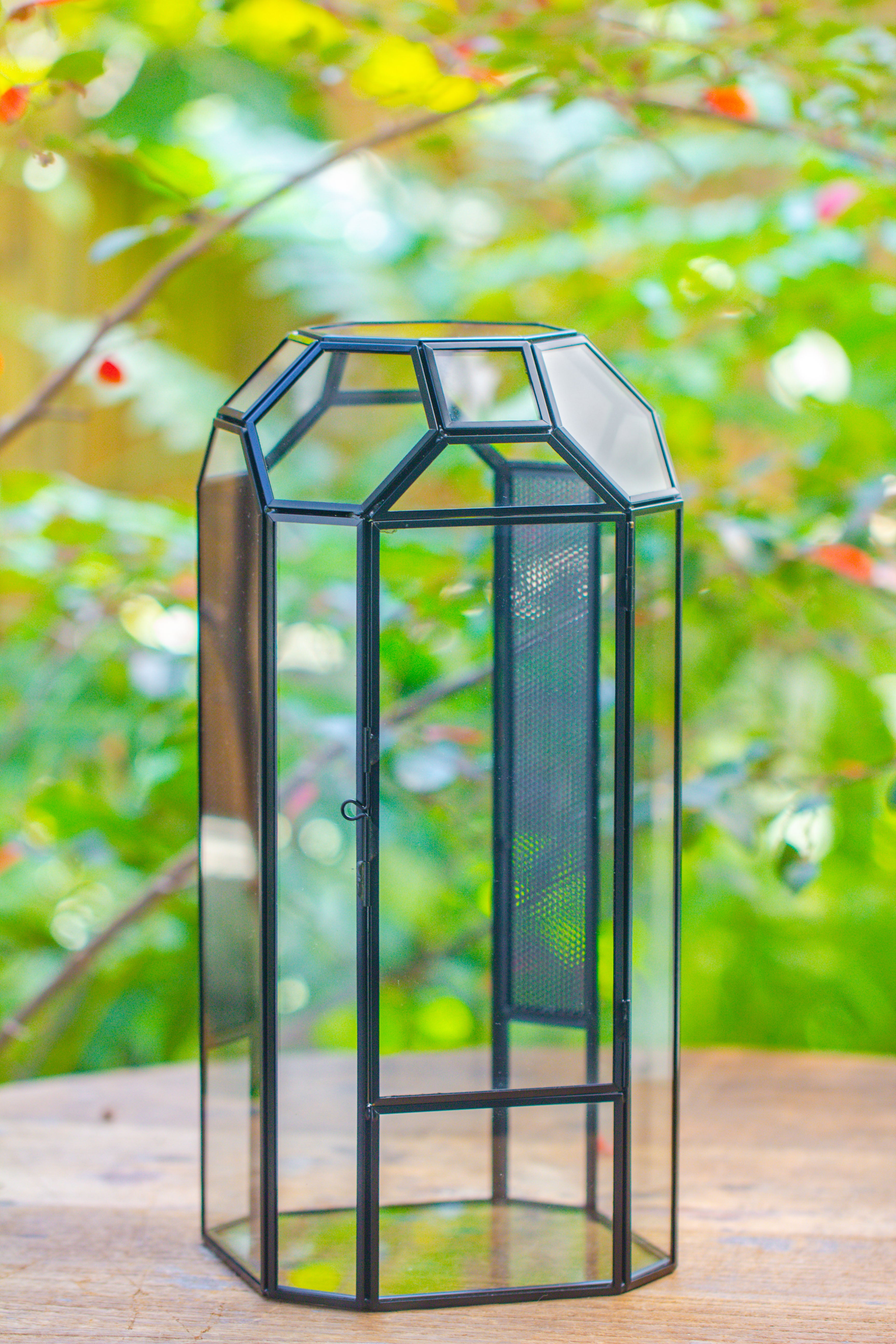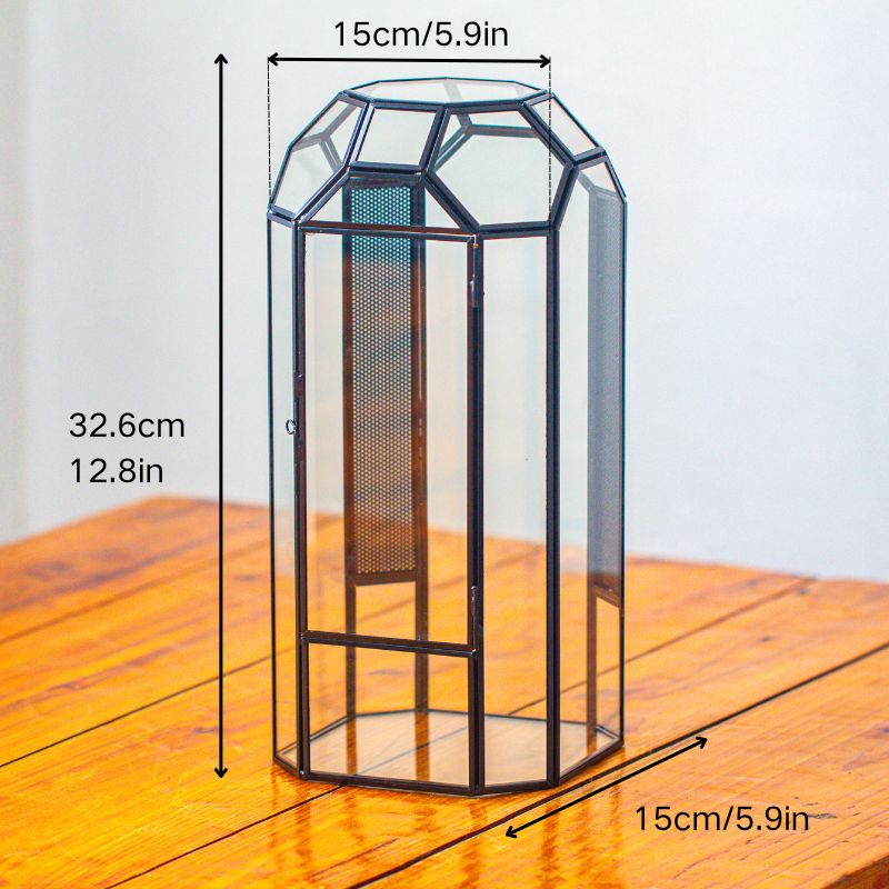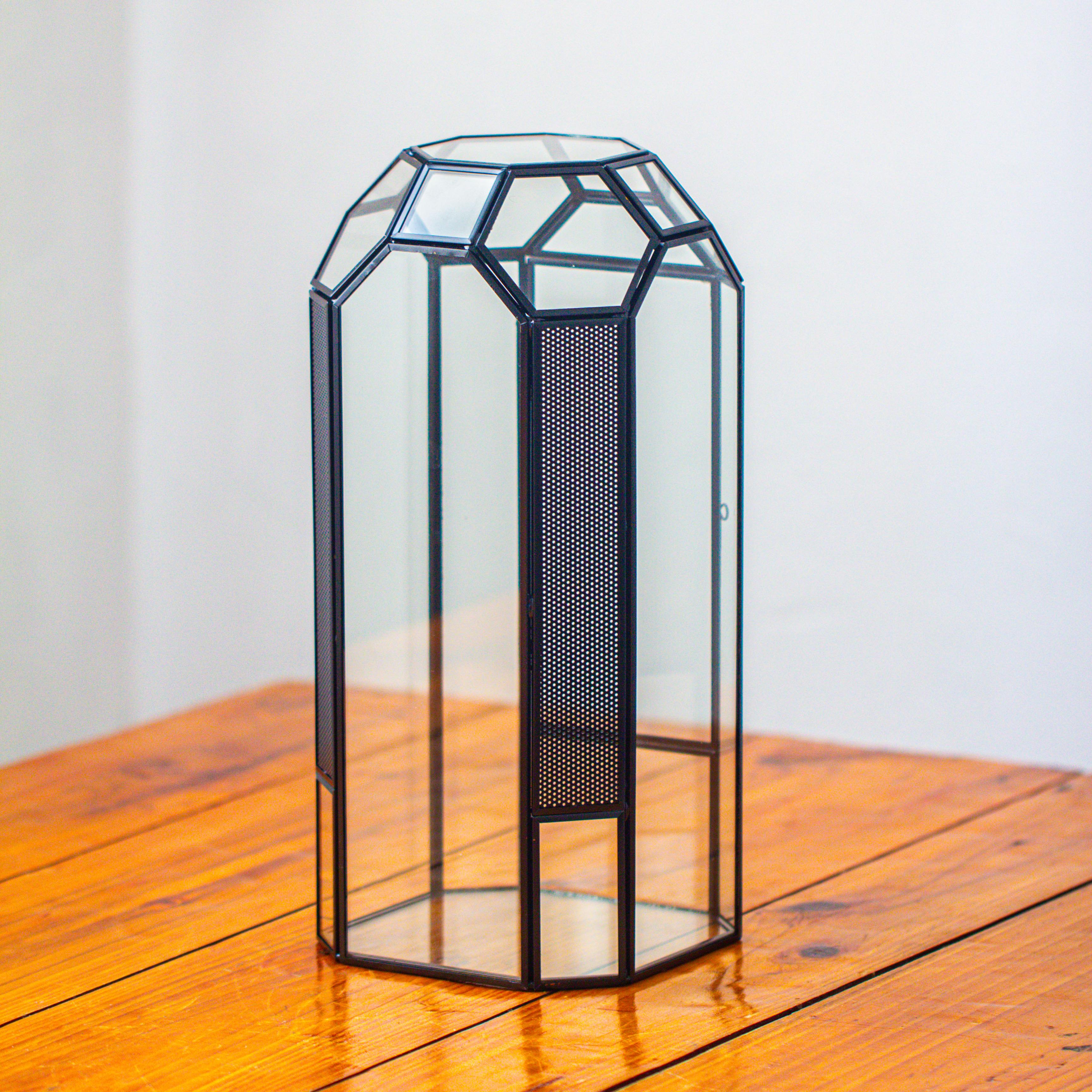 Vintage Tall Octagon Geometric Glass Terrarium with vent for Insect, Spider, Mantis Enclosure