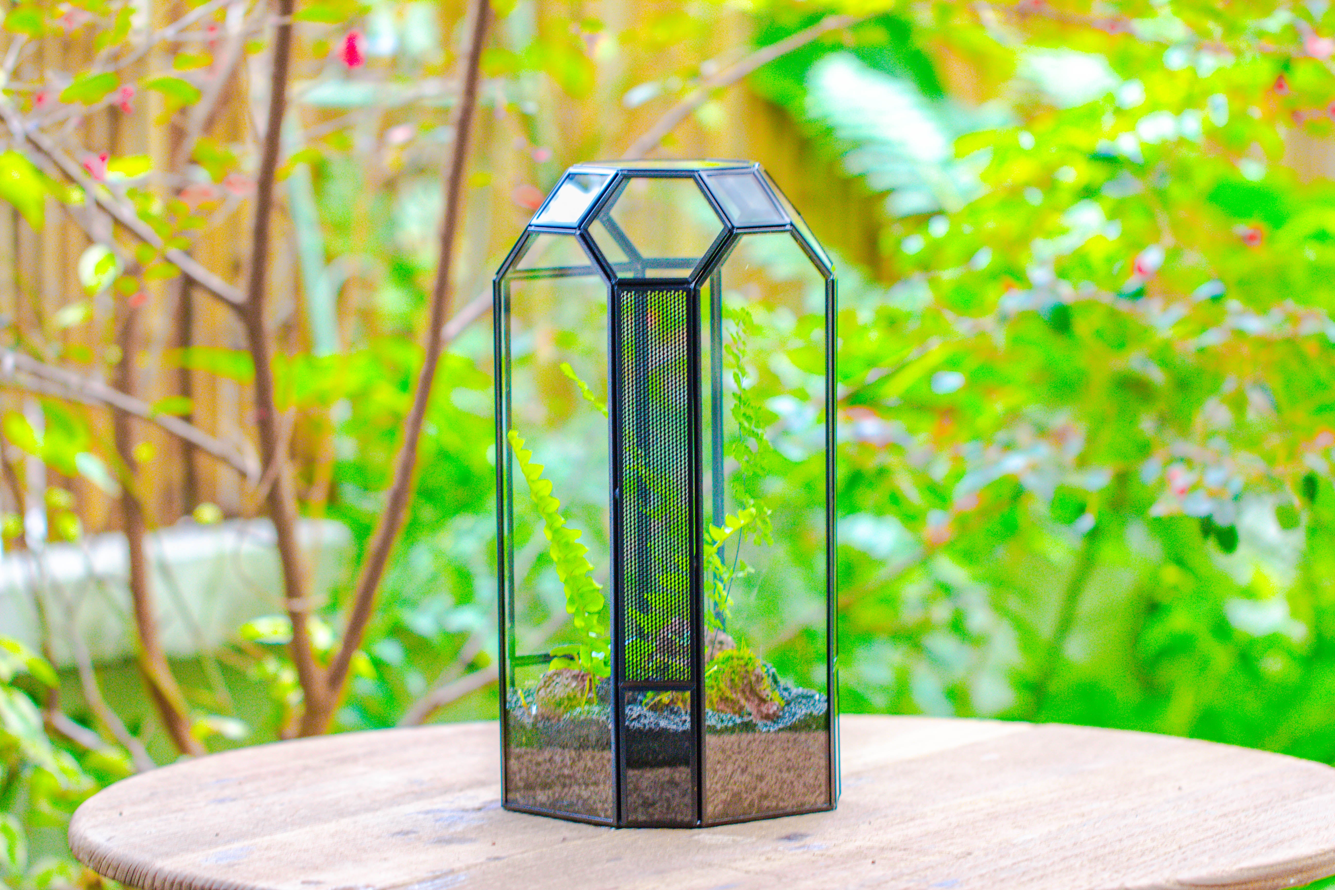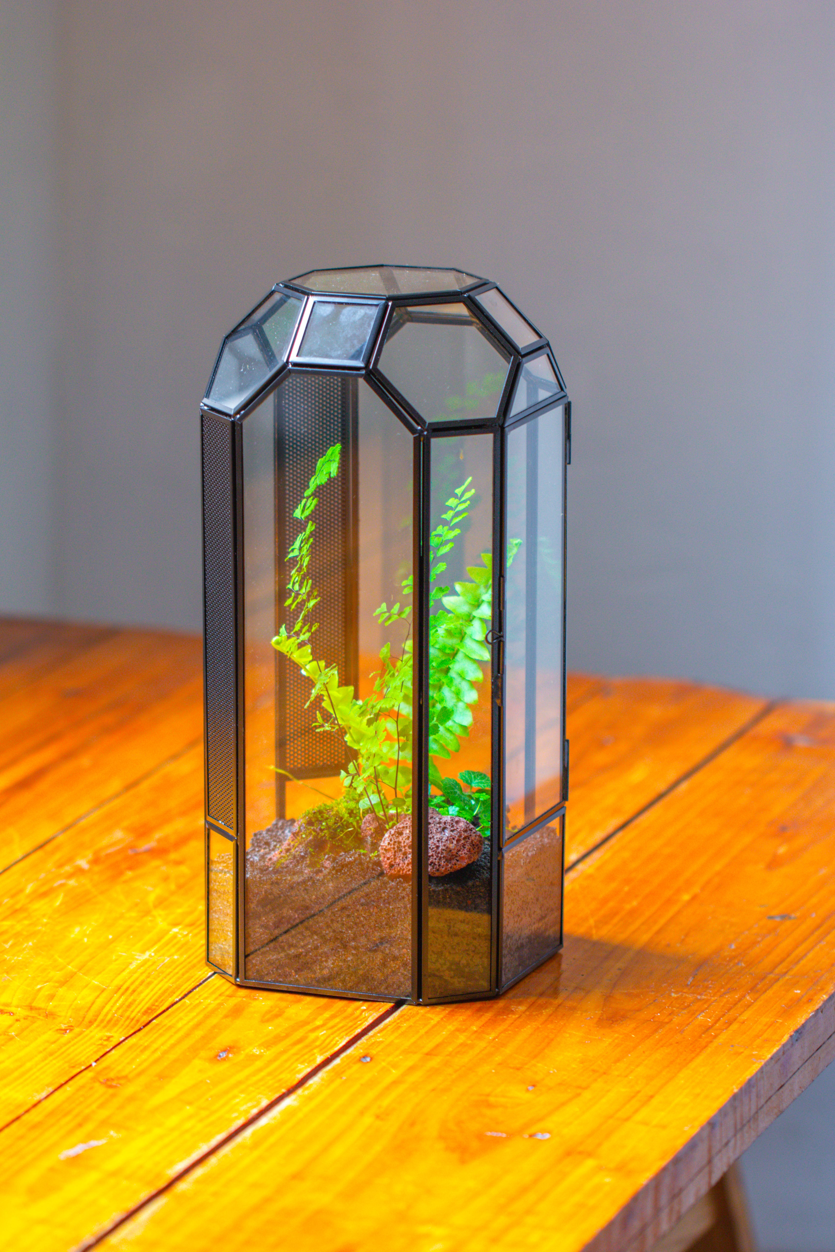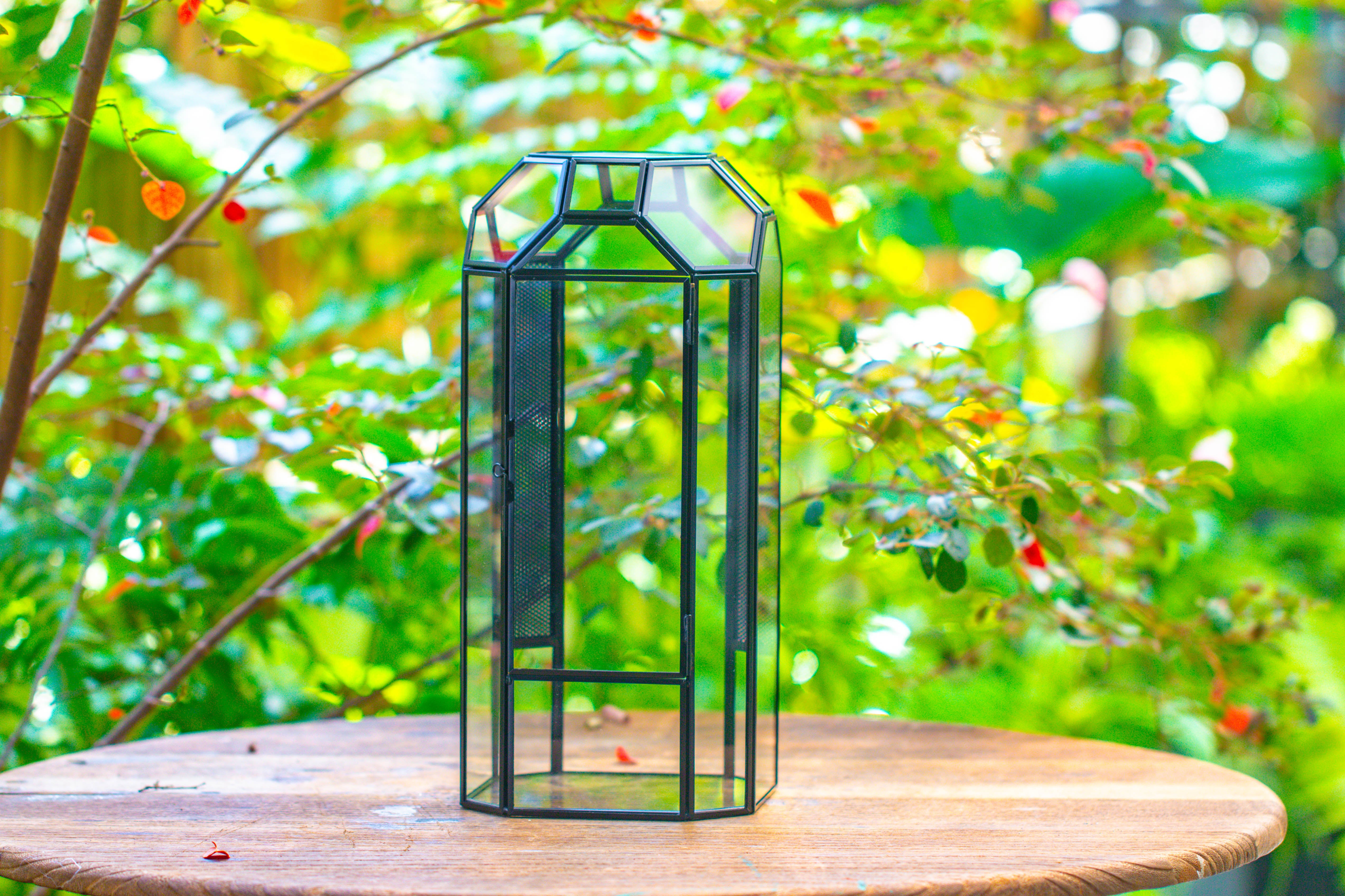 Vintage Tall Octagon Geometric Glass Terrarium with vent for Insect, Spider, Mantis Enclosure