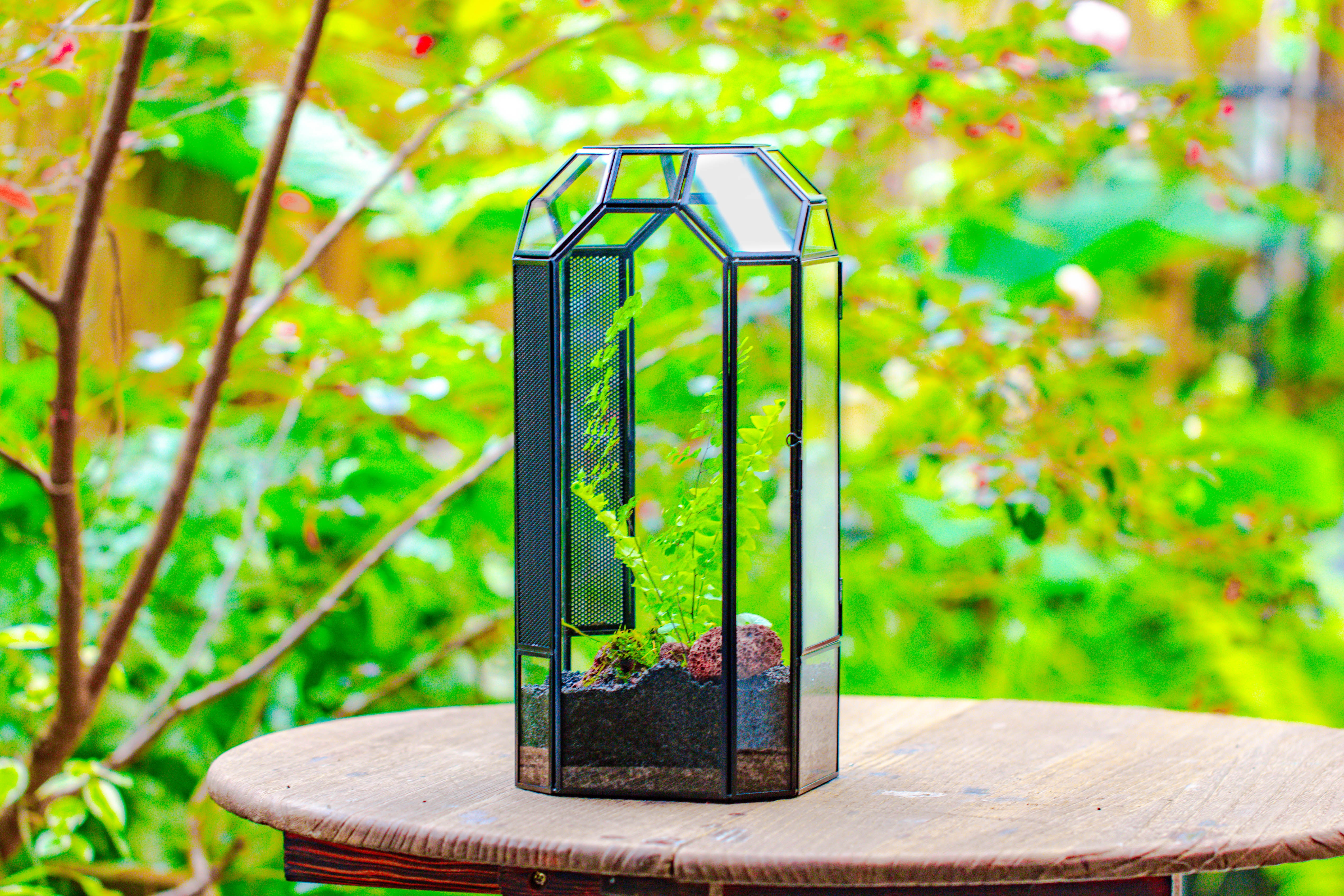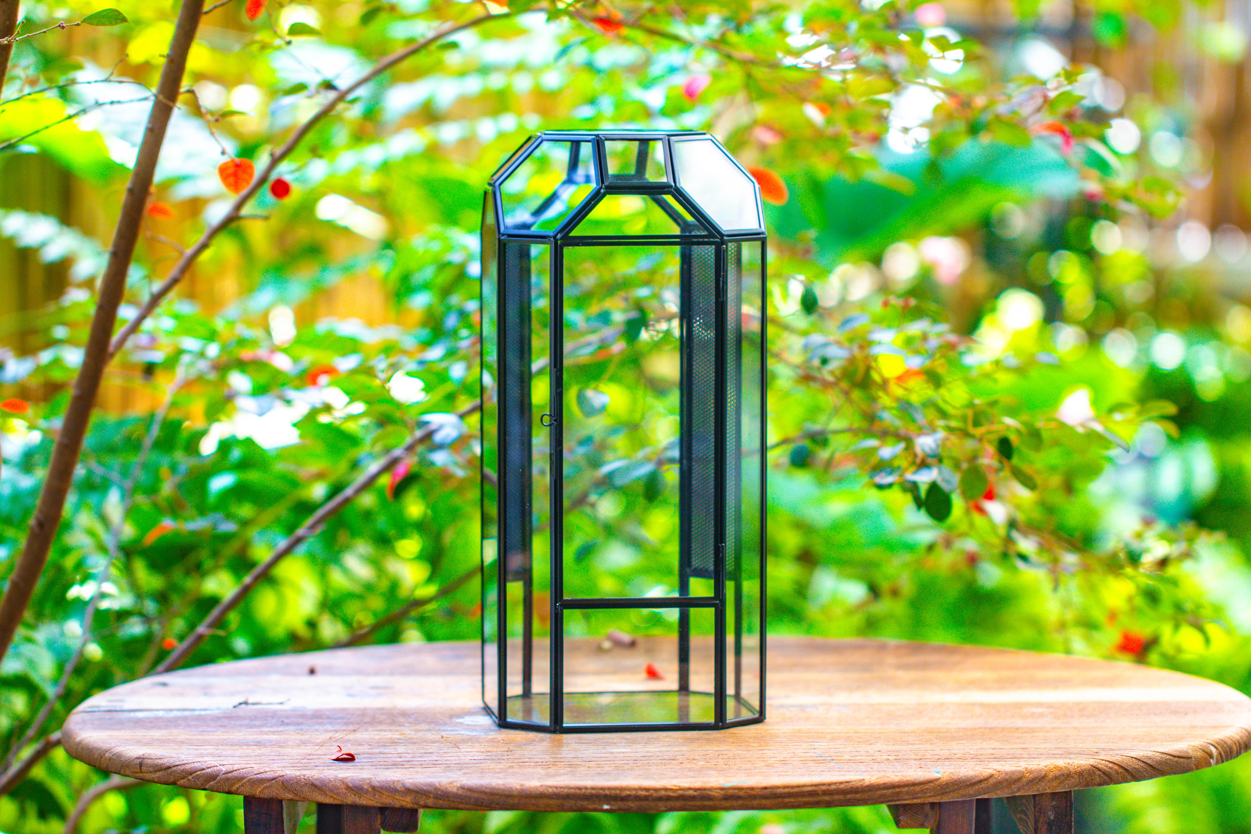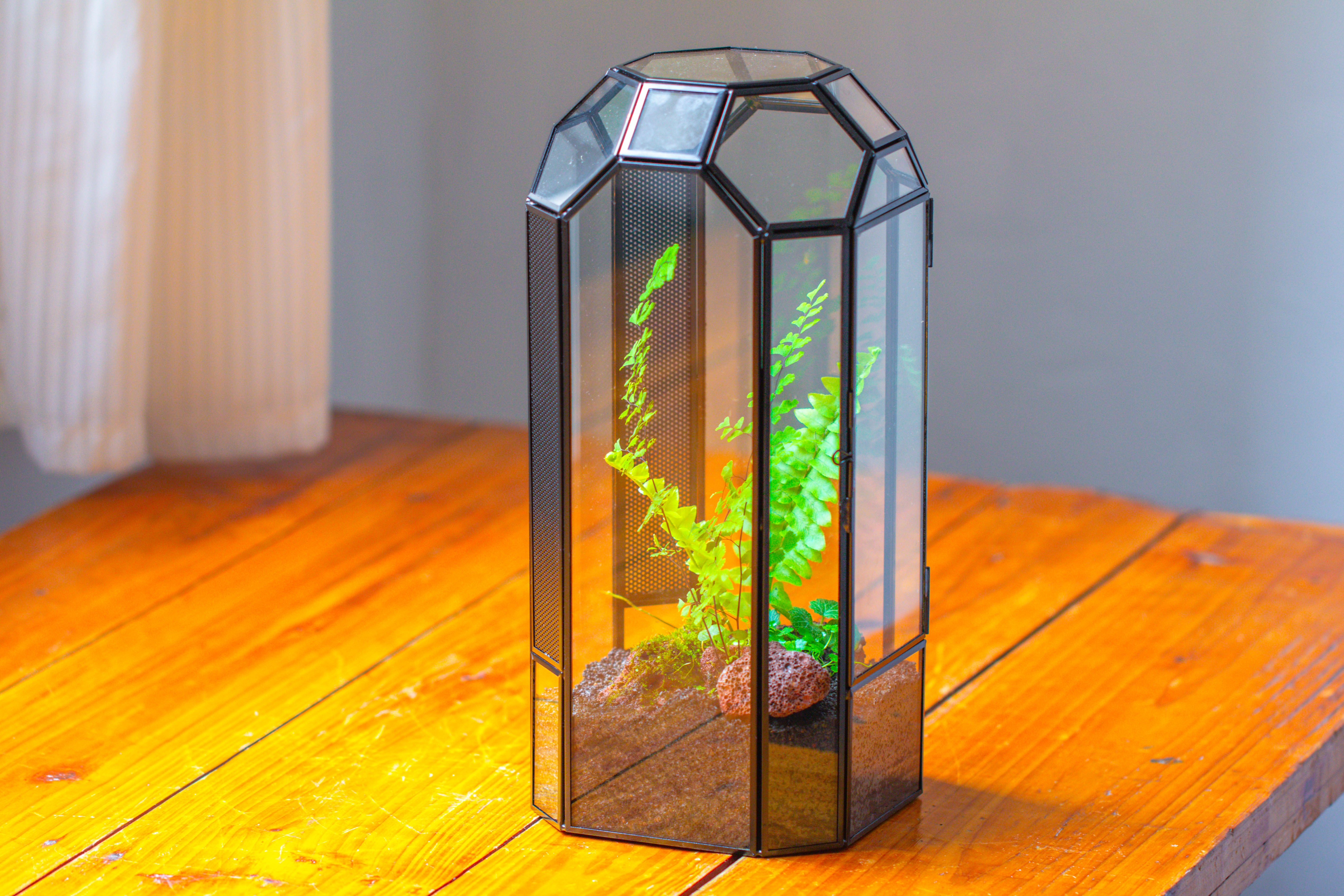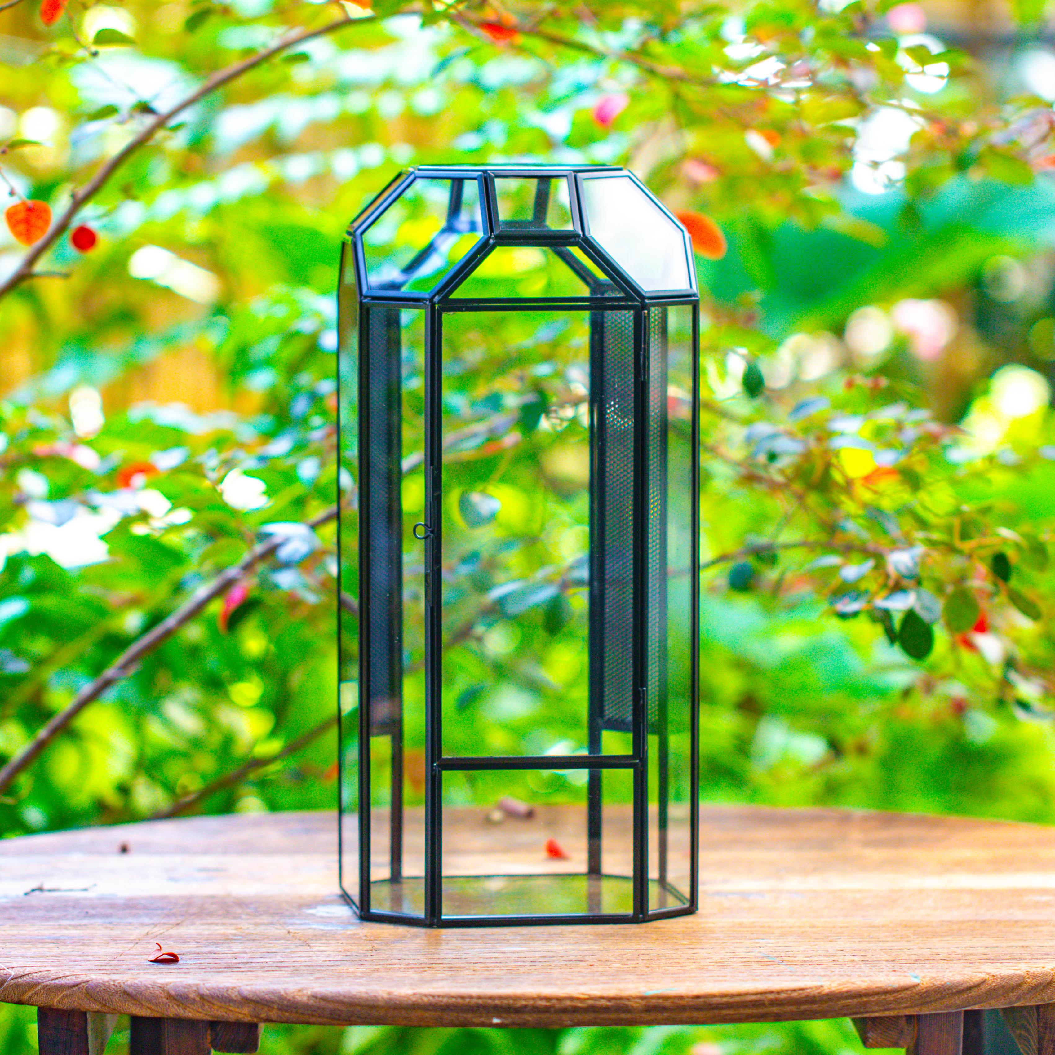 Vintage Tall Octagon Geometric Glass Terrarium with vent for Insect, Spider, Mantis Enclosure
