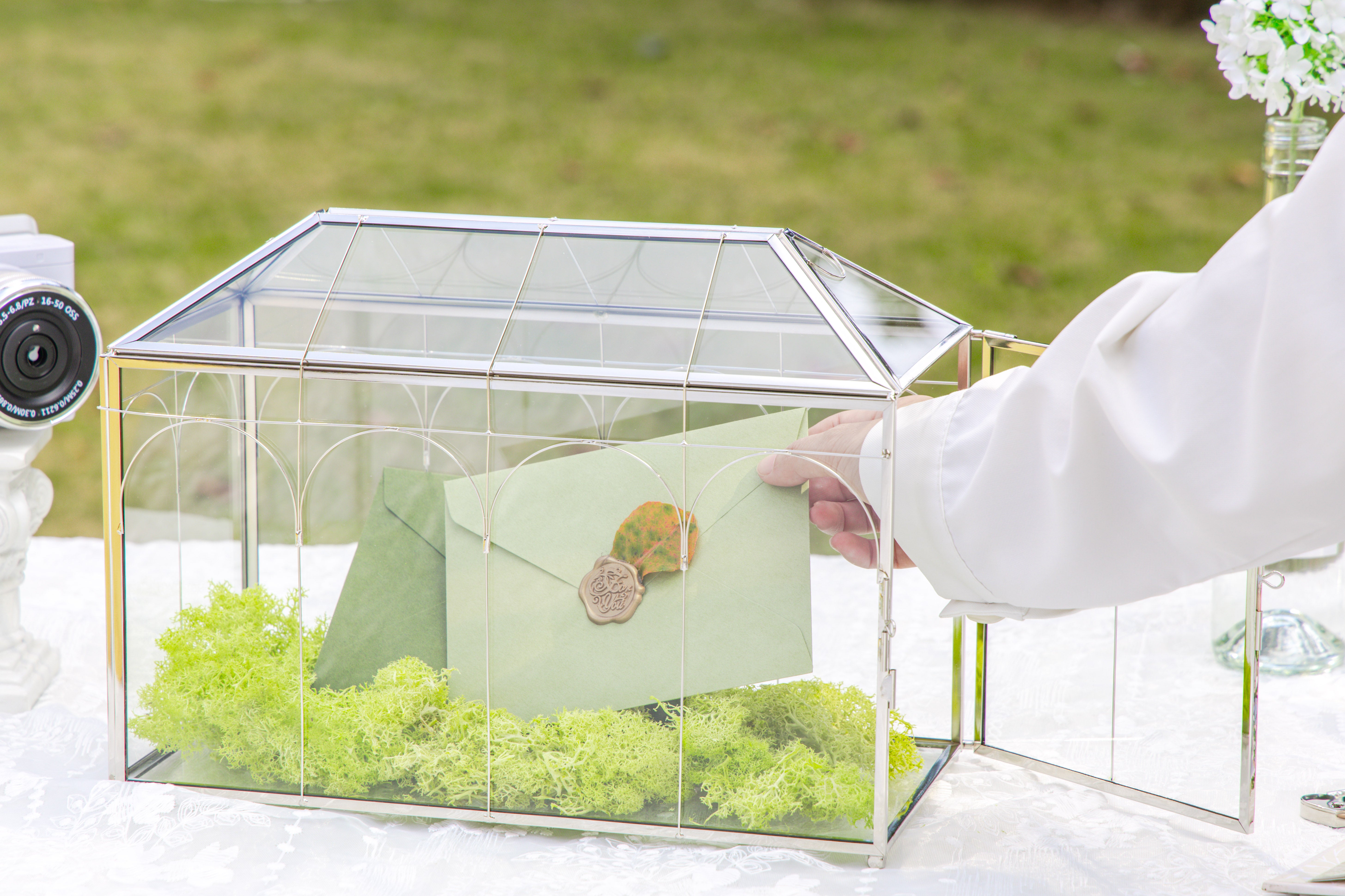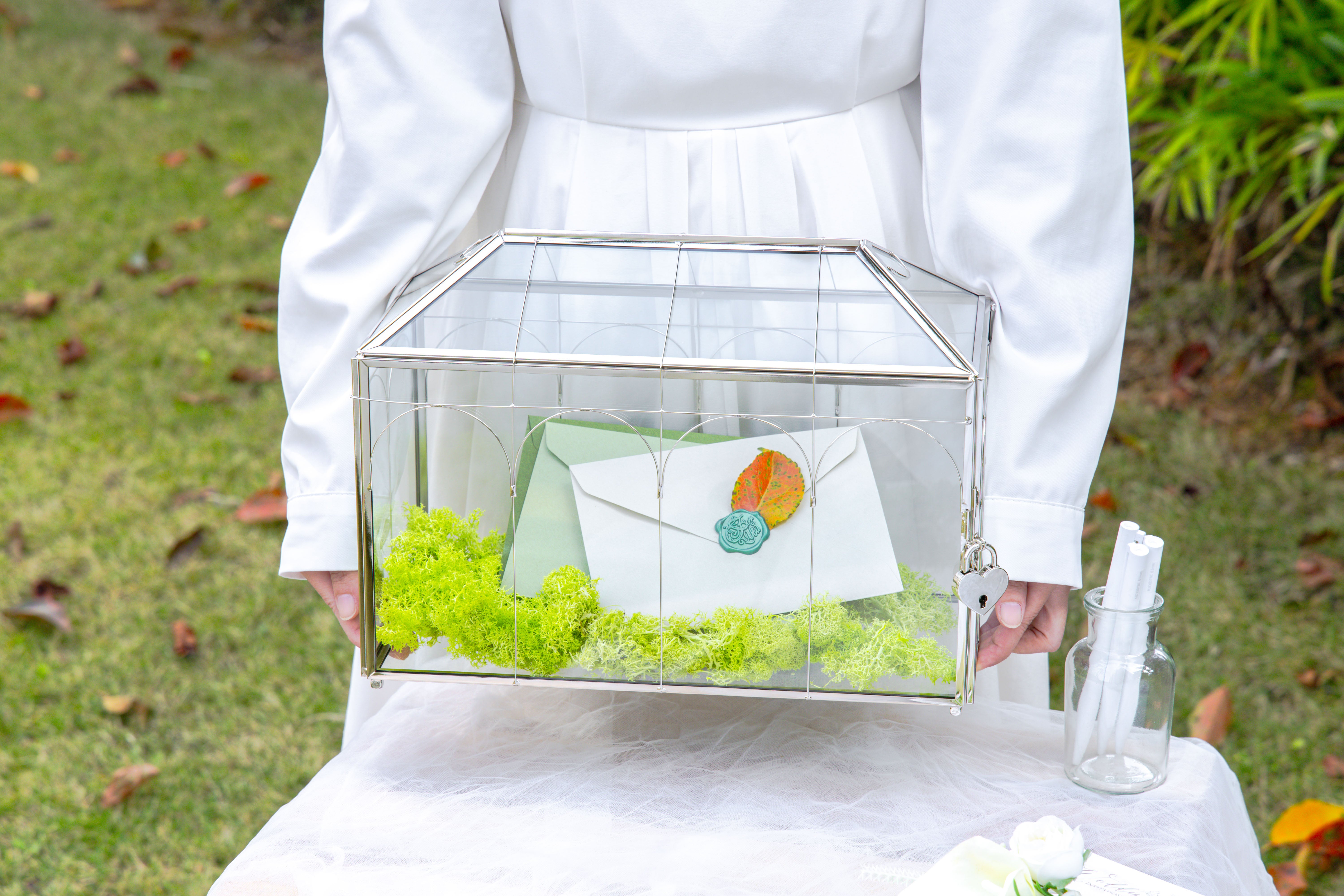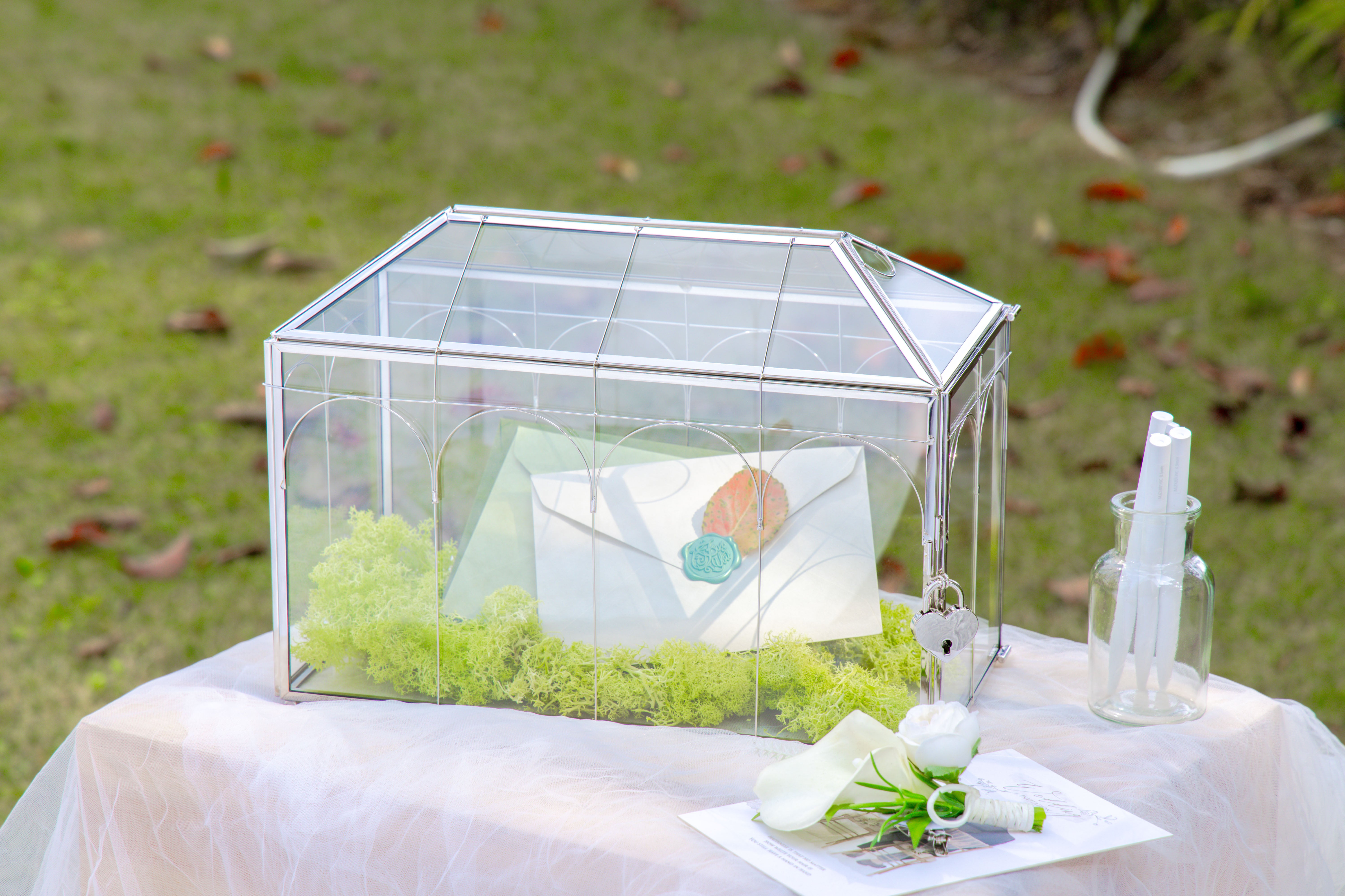 1. このビンテージスタイルのカードボックスは、一部の購入者からのリクエストにより、ねじれたワイヤーの装飾が施されたビンテージテラリウムに改良されました。