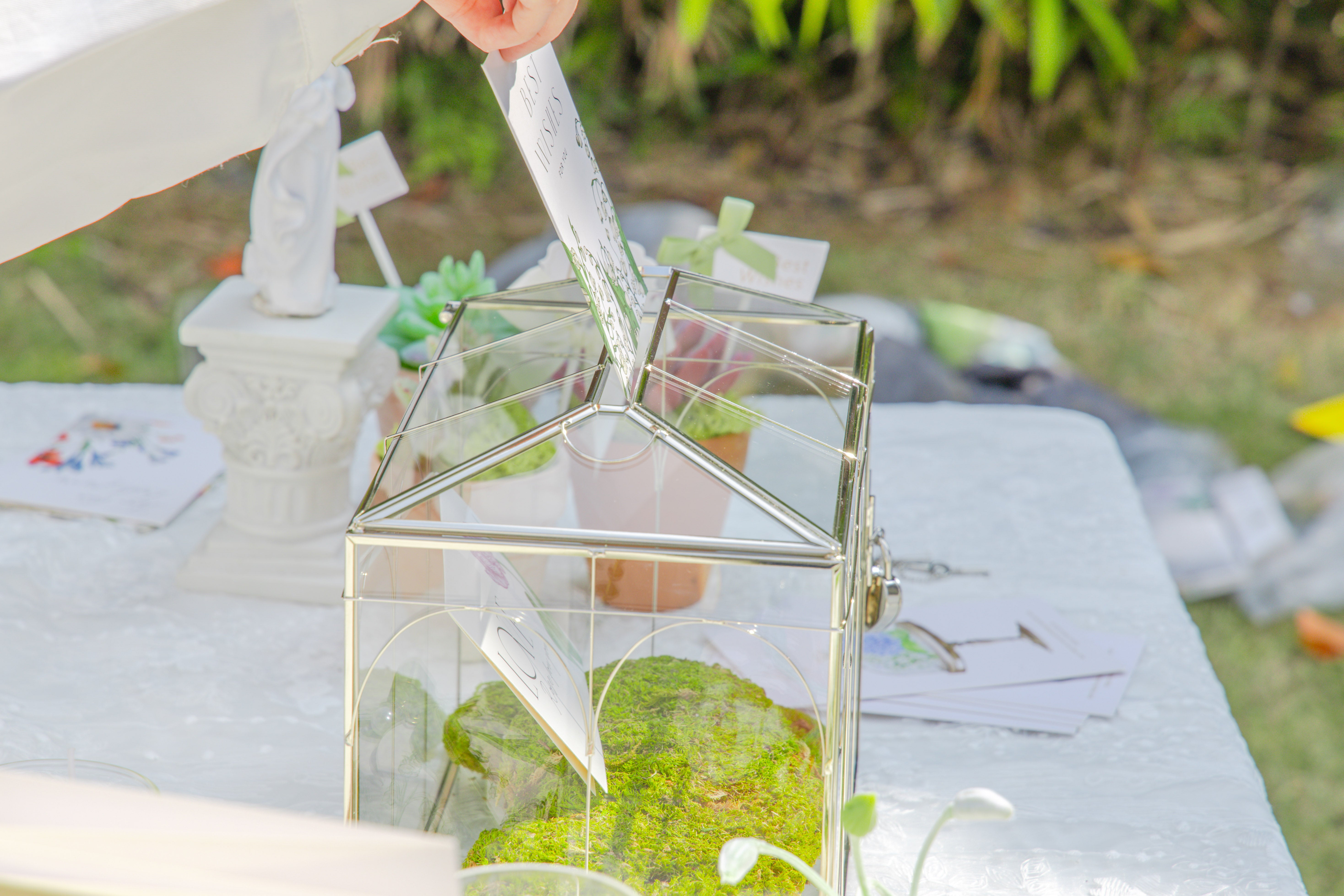 1. このビンテージスタイルのカードボックスは、一部の購入者からのリクエストにより、ねじれたワイヤーの装飾が施されたビンテージテラリウムに改良されました。